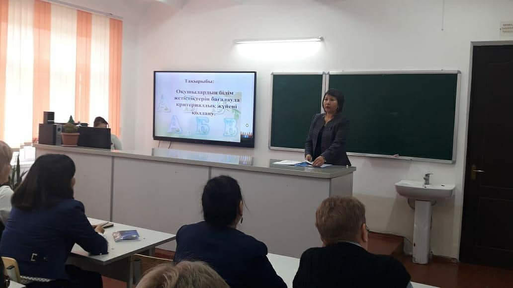 6.11.2019 күні Тараз қаласы әкімдігінің білім бөлімінің әдіскері Түйтебаева А.О. ұйымдастыруымен "Оқушылардың білім жетістіктерін бағалауда критериалдық жүйені қолдану" тақырыбында №38 орта мектебінде семинар өтілді. Семинарда А.Түйтебаева ҚР білім және ғылым министрлігінің 2008 жылғы 18 наурыздағы №125 бұйрығымен 2018ж 14 маусымдағы №272 бұйрығымен енгізілген өзгерістер мен толықтырулар таныстырып өтсе, №39 мектеп-гимназиясының ДОІЖО Г.Сертекова критериалды бағалаудың маңыздылығы мен ерекшелігі және пайдаланудың тиімділігіне мән беру туралы айтты. №46 орта мектебінің география пәні мұғалімі М.Божымбаева білім алушылардың оқу жетістігін қалыптастырушы, жиынтық бағалау үдерісін жоспарлау мен ұйымдастыру, тоқсандық және жылдық баға қою мәселесі бойынша түсіндірді.