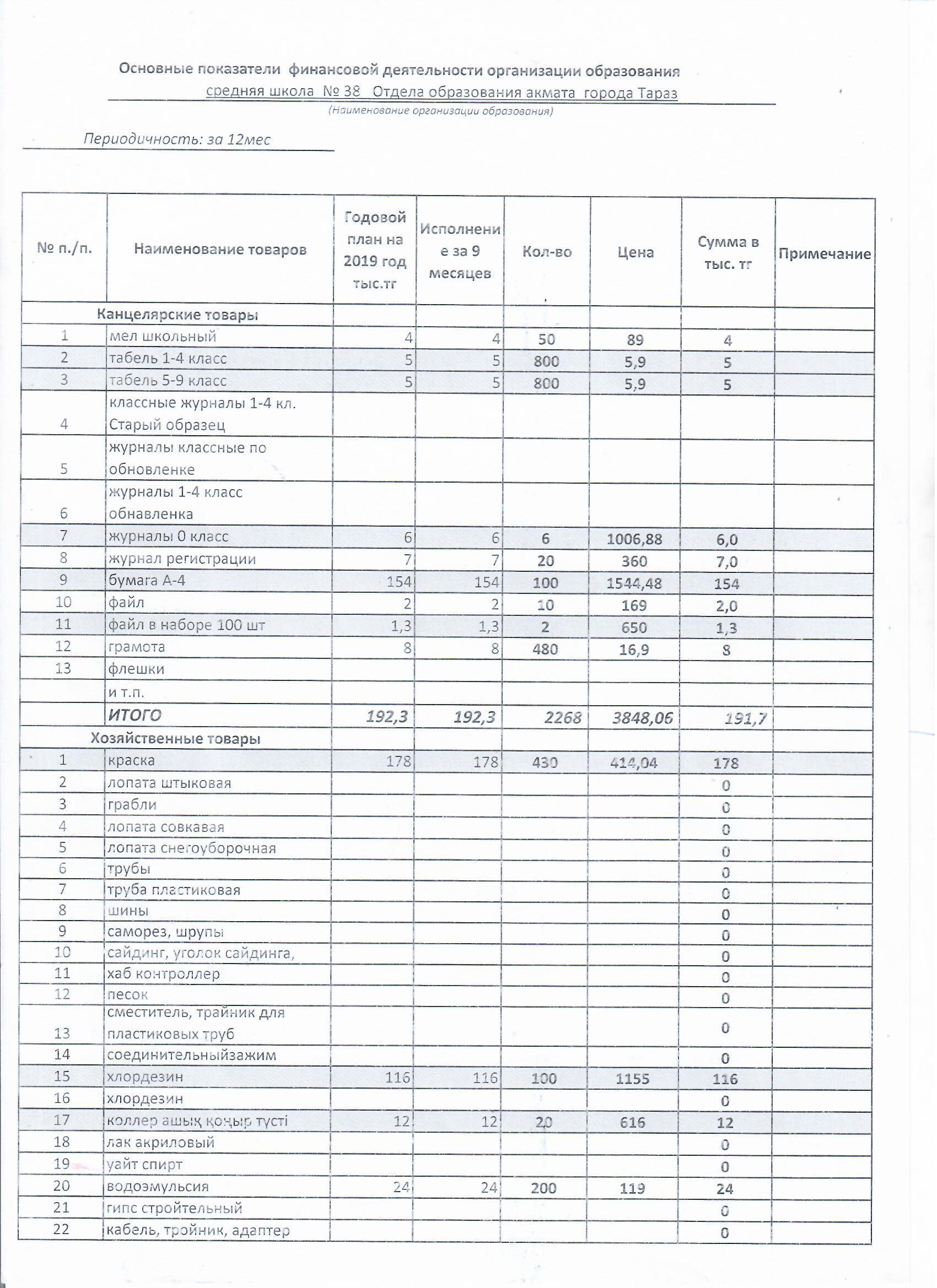 16 қаңтар 2020 Основные показатели финансовой деятельности организации образования по состоянию на "01"01.2020г.