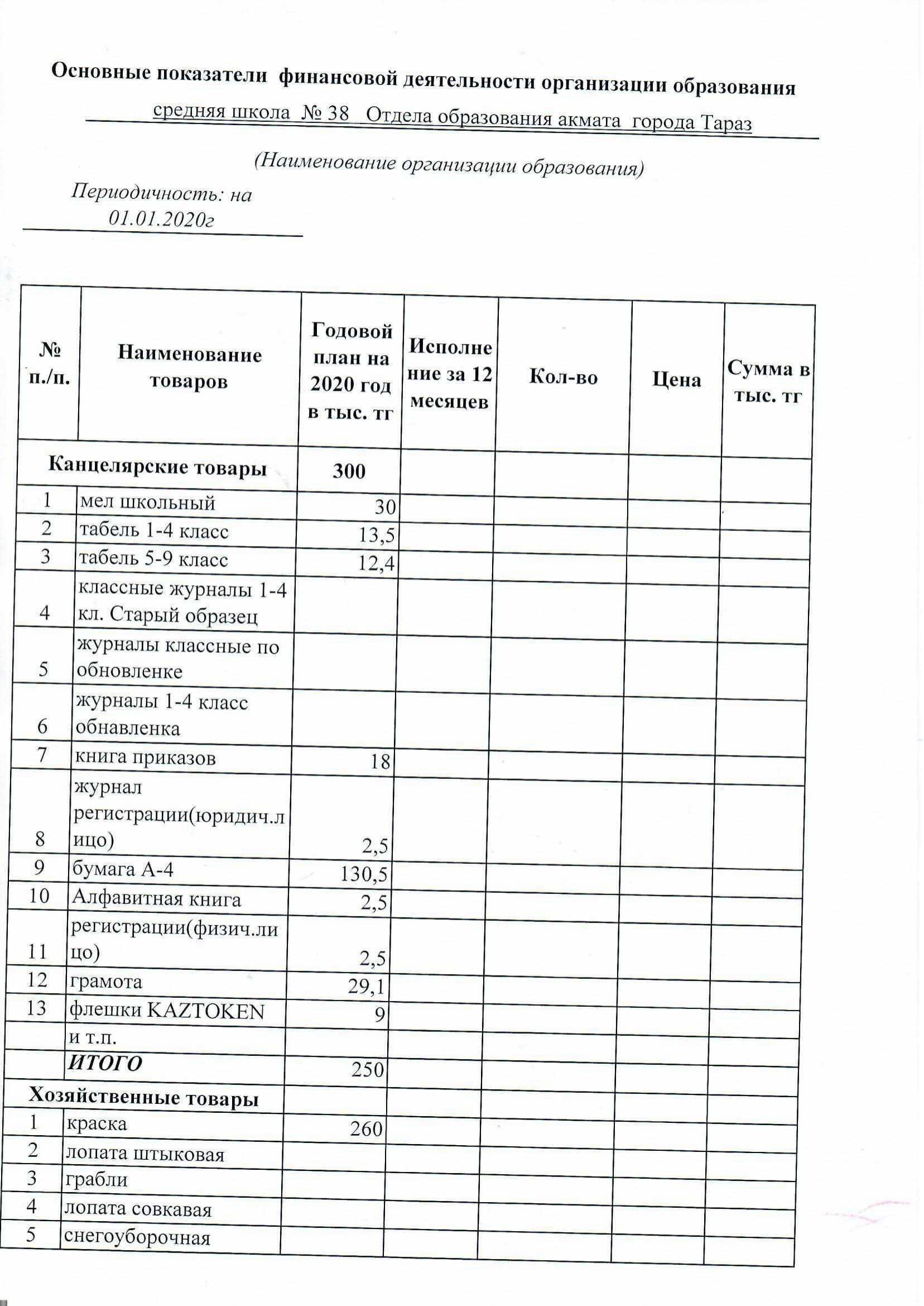 19 ақпан 2020 0 1 2 3 4 5 Основные показатели финансовой деятельности организации образования по состоянию на "01"01.2020г.