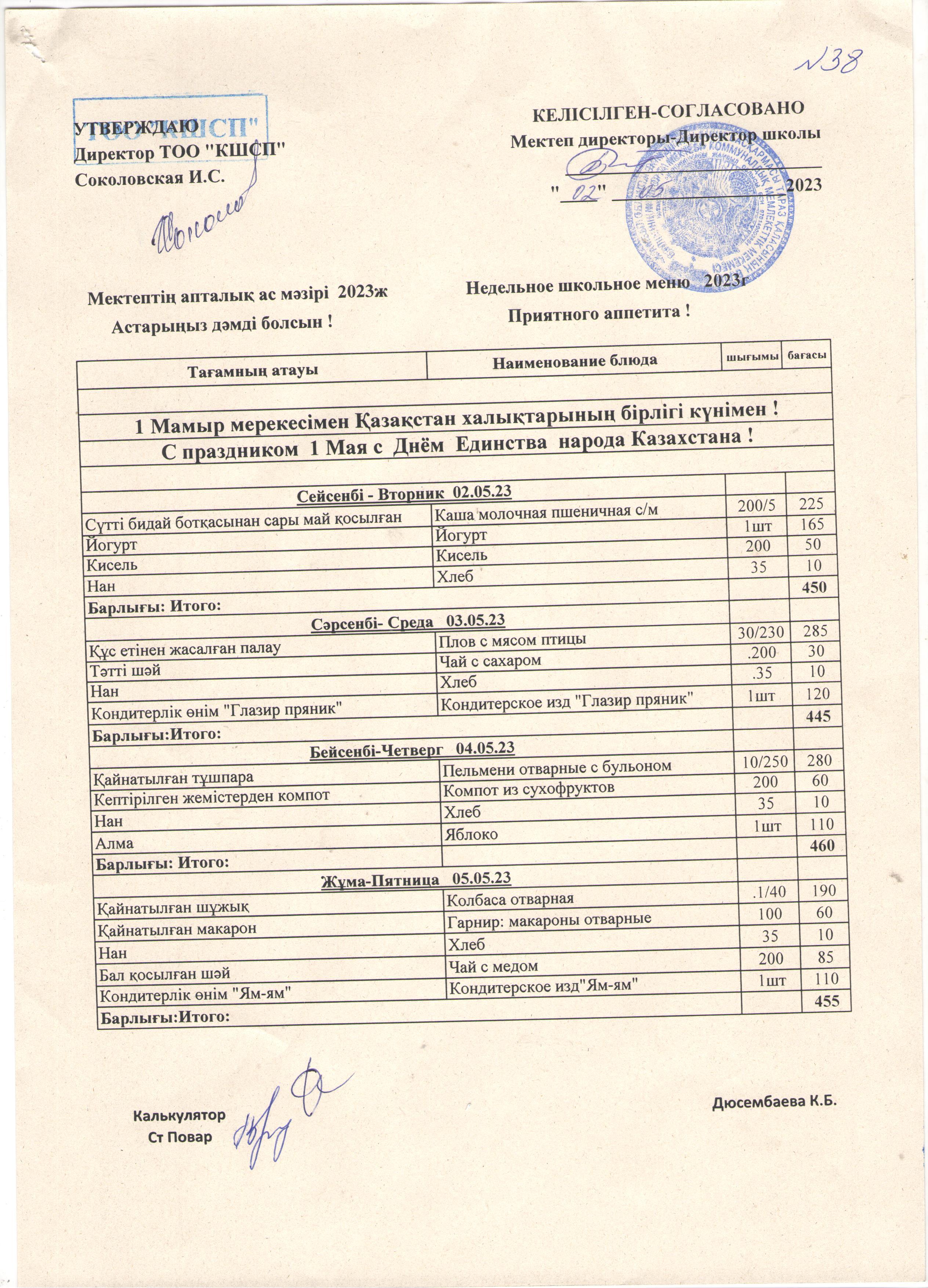 мектептің ас мәзірі » СШ №38
