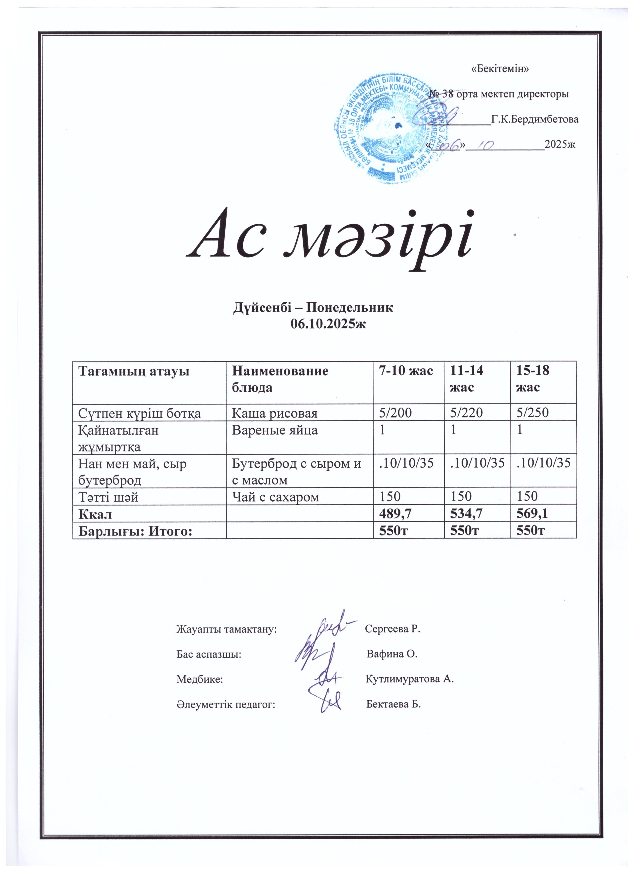 12 қыркүйек 2024 Ас мәзірі